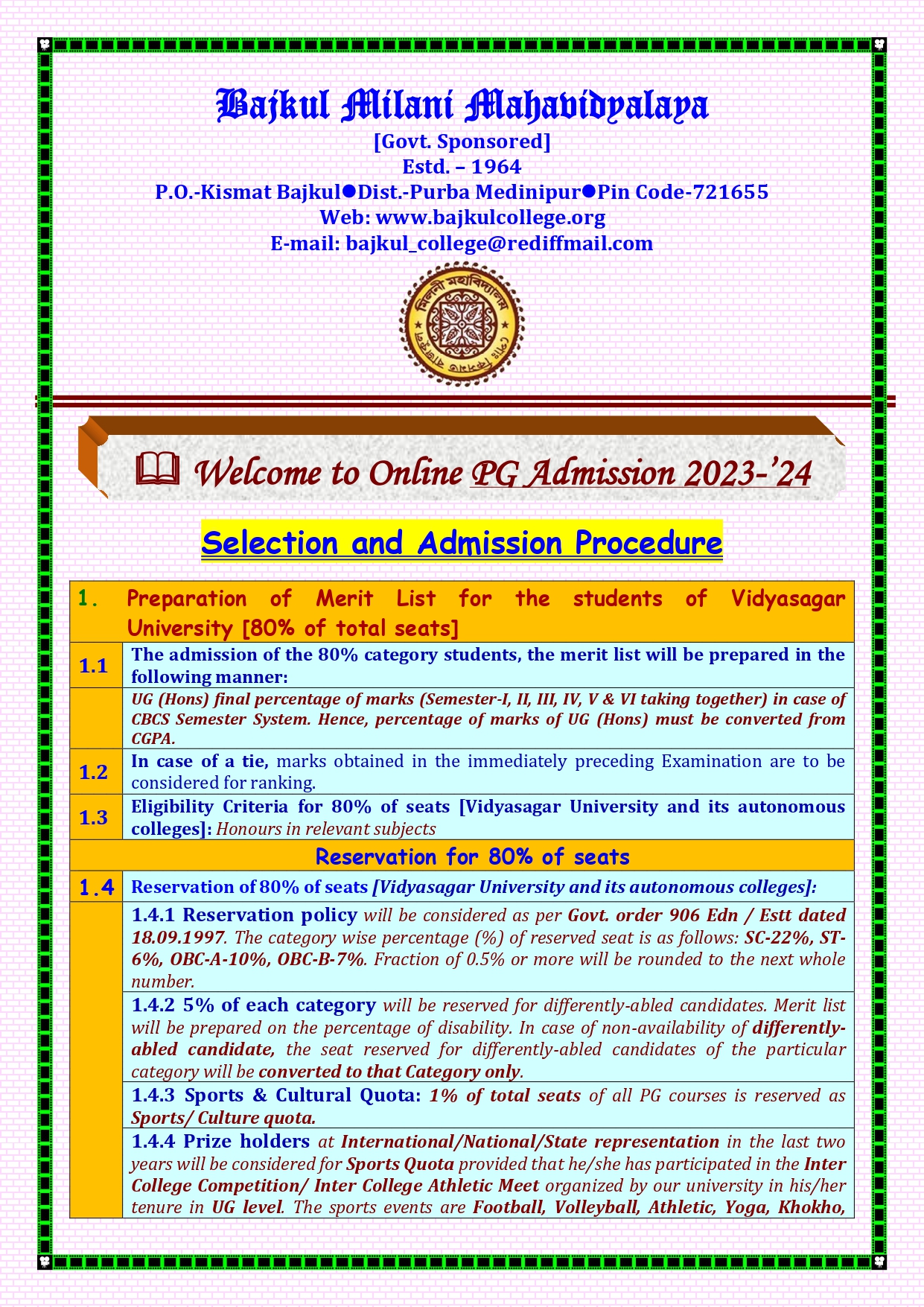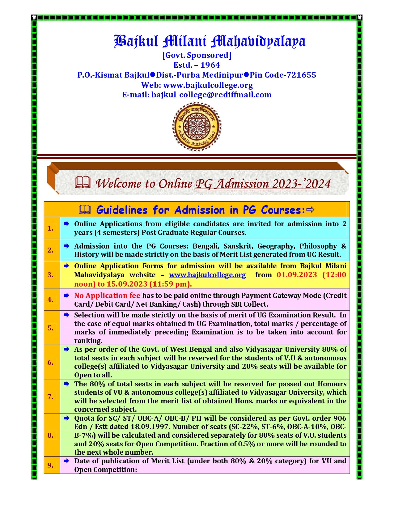 E-mail Id : bajkul_college@rediffmail.com