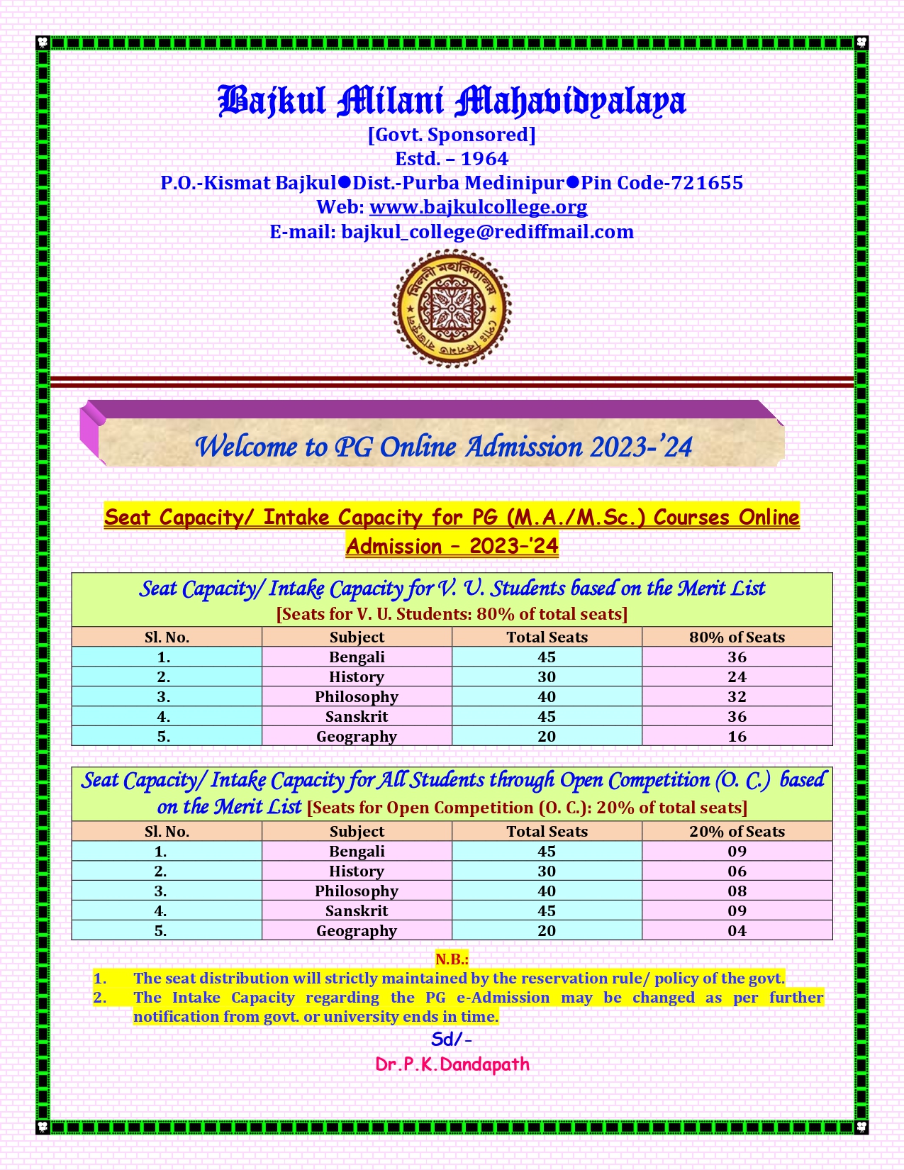 E-mail Id : bajkul_college@rediffmail.com