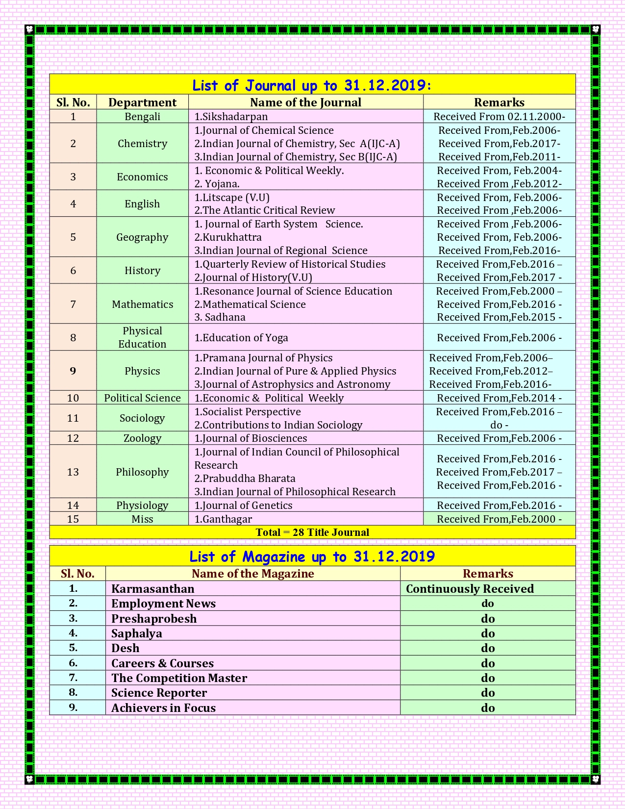 Library Facility (Central & Departmental)